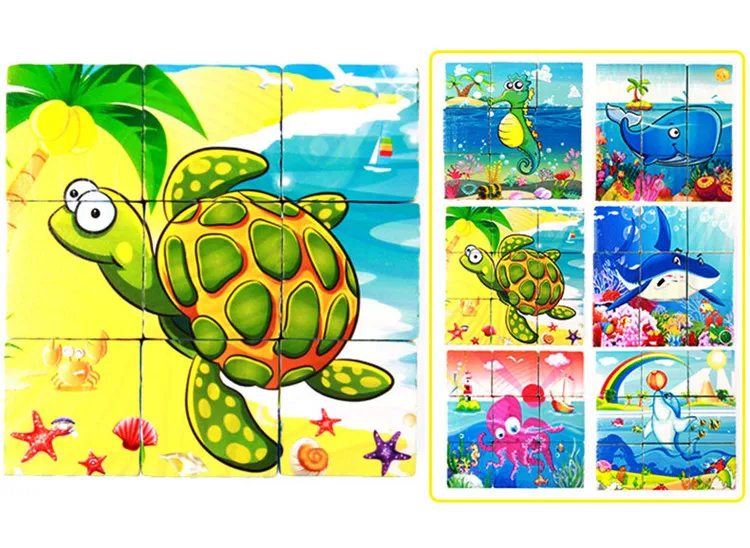9 Pieces Six-sided 3D Cubes Jigsaw Puzzles Tray Wooden Toys Children Kids Educational Toys Funny Games