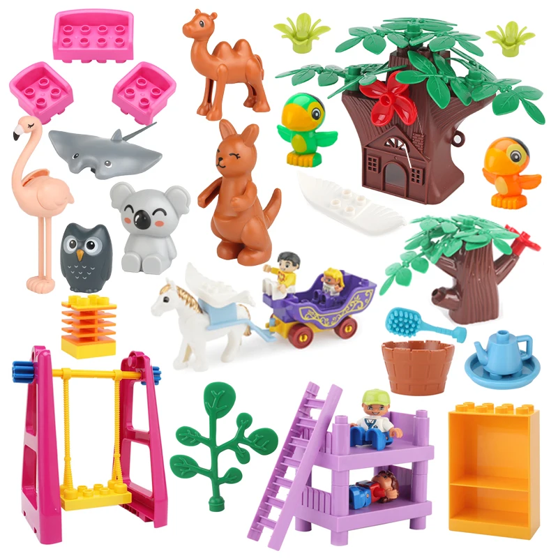New Big Building Blocks Bricks Accessories Zoo Animals Owl Koala Furniture Model Creativity Function Education Toys For Children