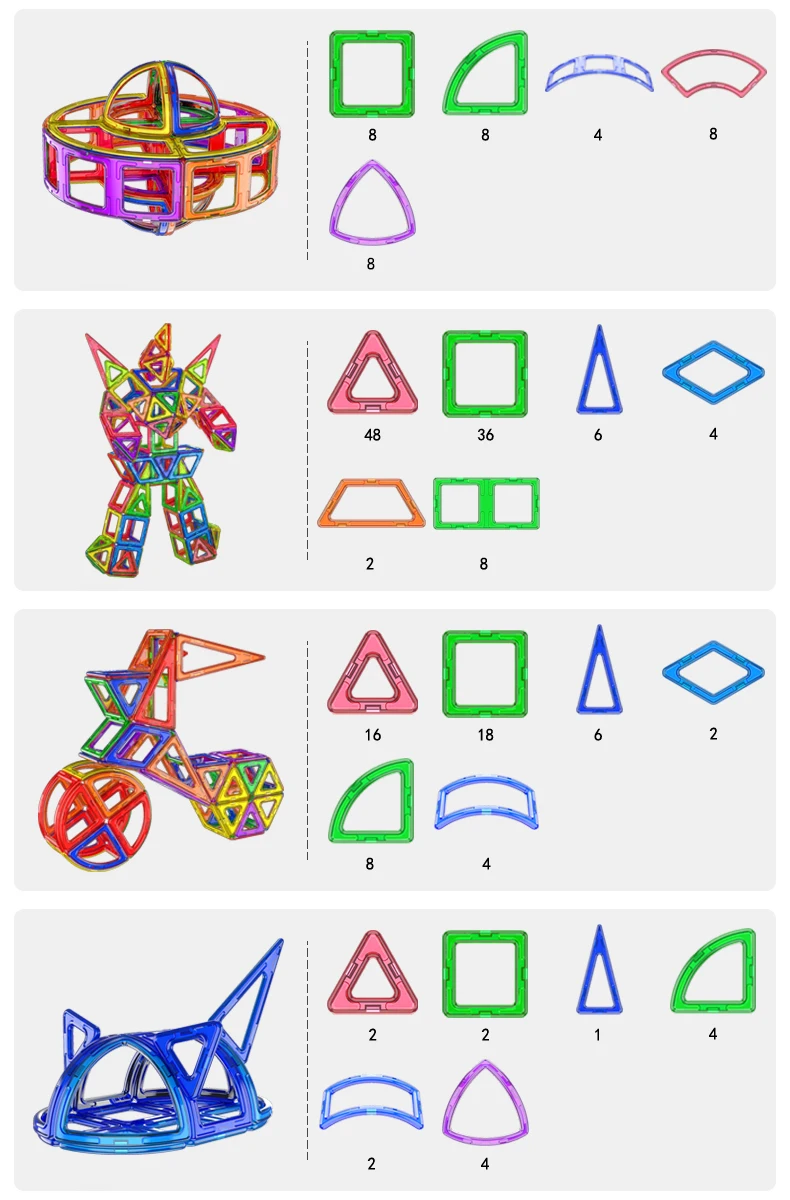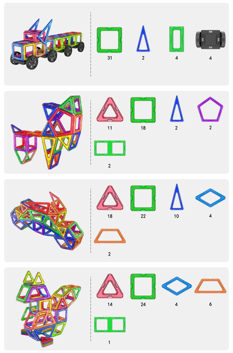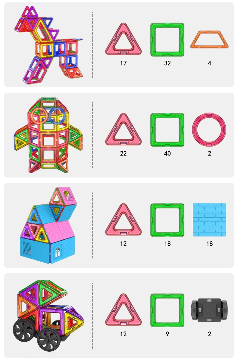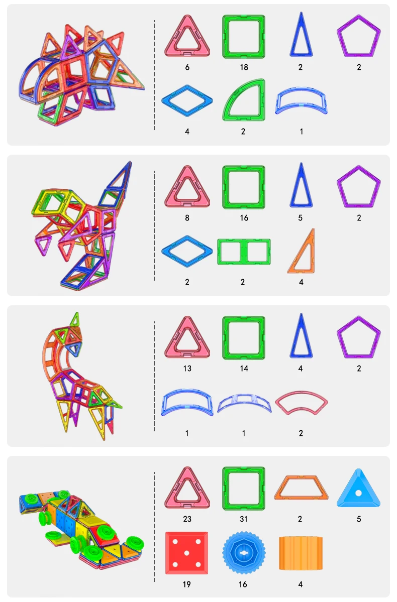 In summary, our Big Size Magnetic Designer Magnet Building Blocks Accessories are a fantastic choice for children of all ages. From the recommended age range of 4-6 years to 18+, this toy set offers endless possibilities for creativity, learning, and fun. Made from durable ABS plastic, it is safe for children to play with and promotes the development of various skills. So why wait? Get this set today and watch your child's imagination soar!