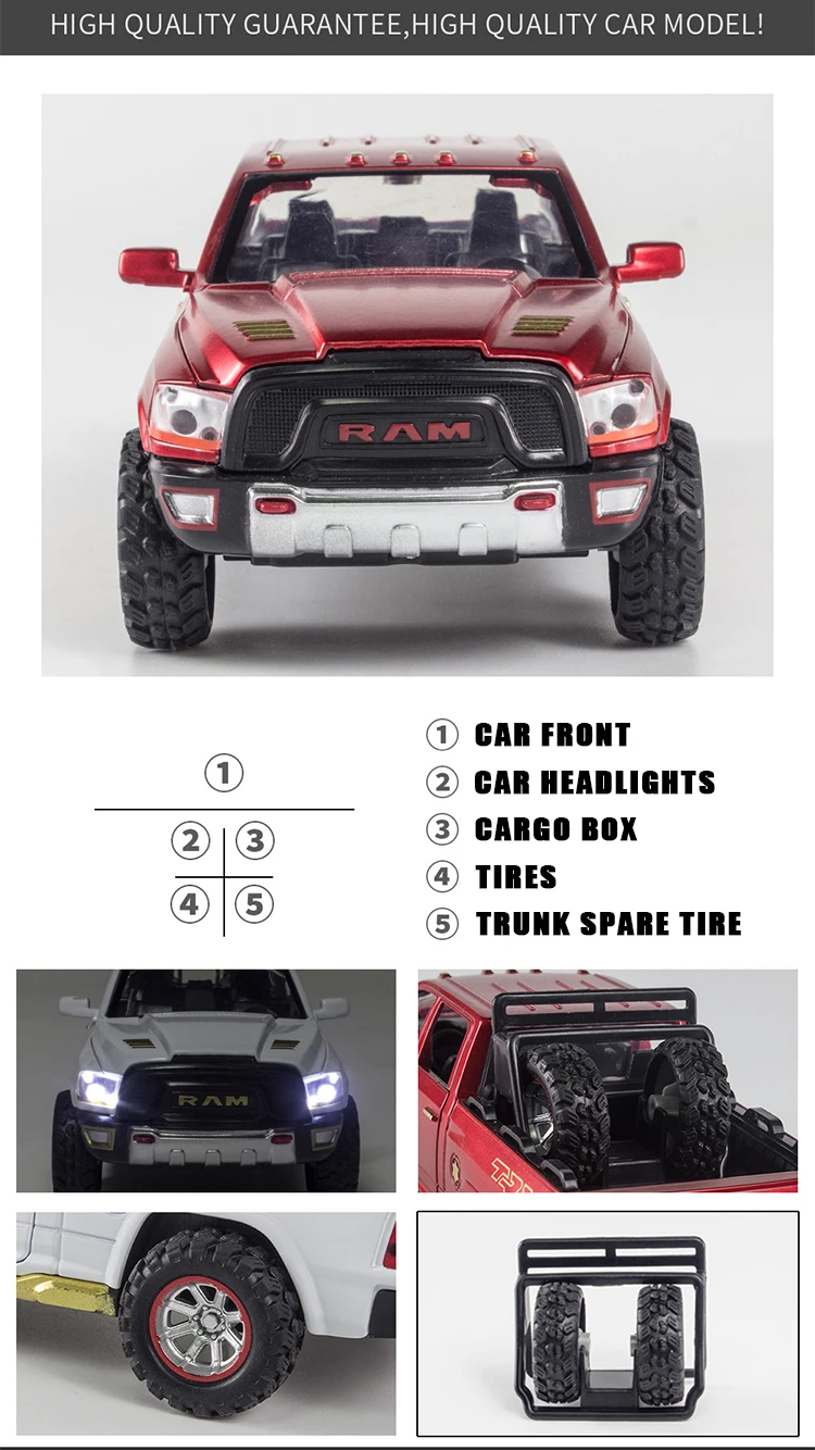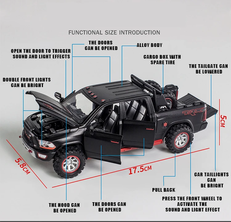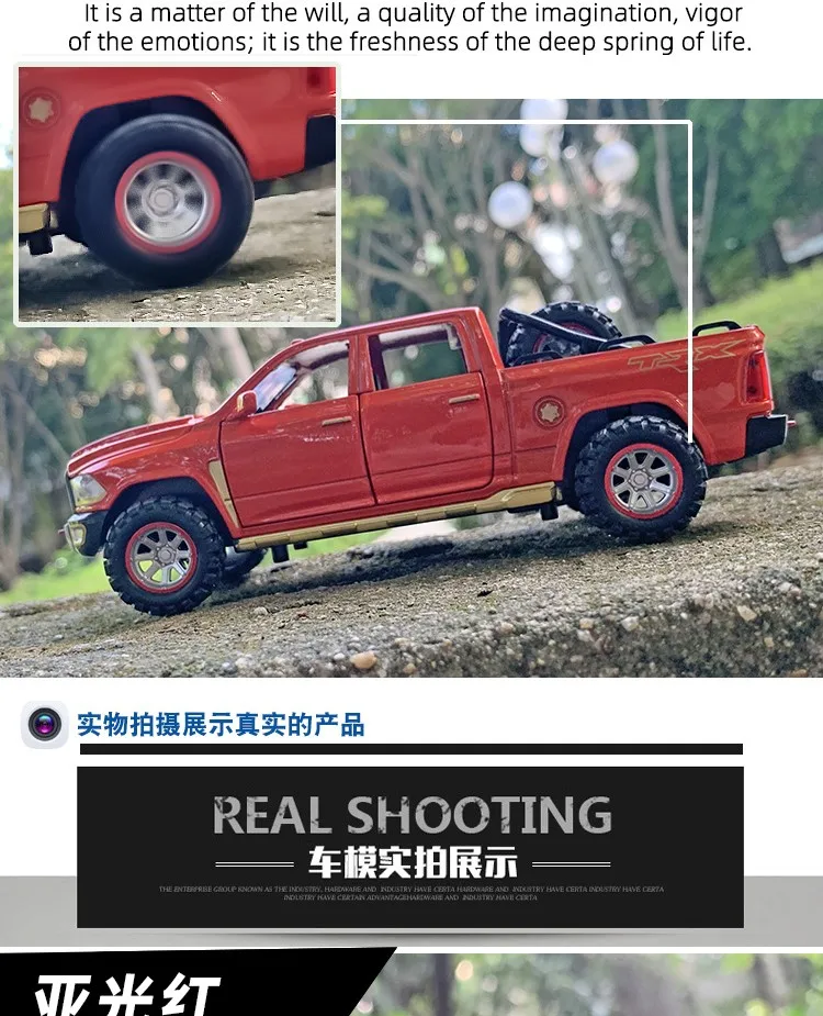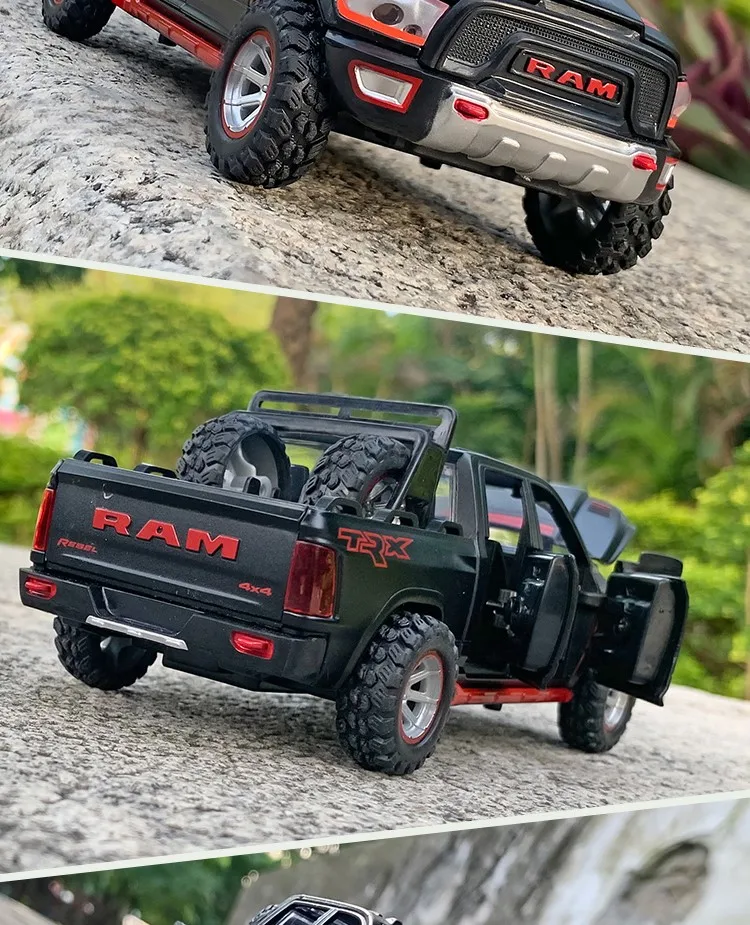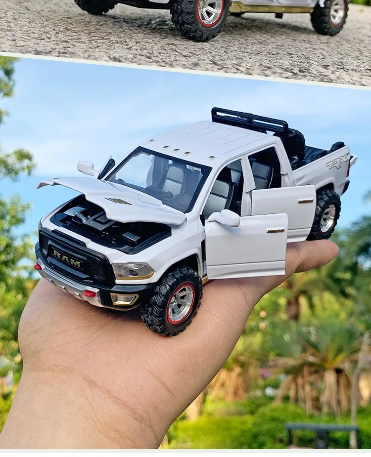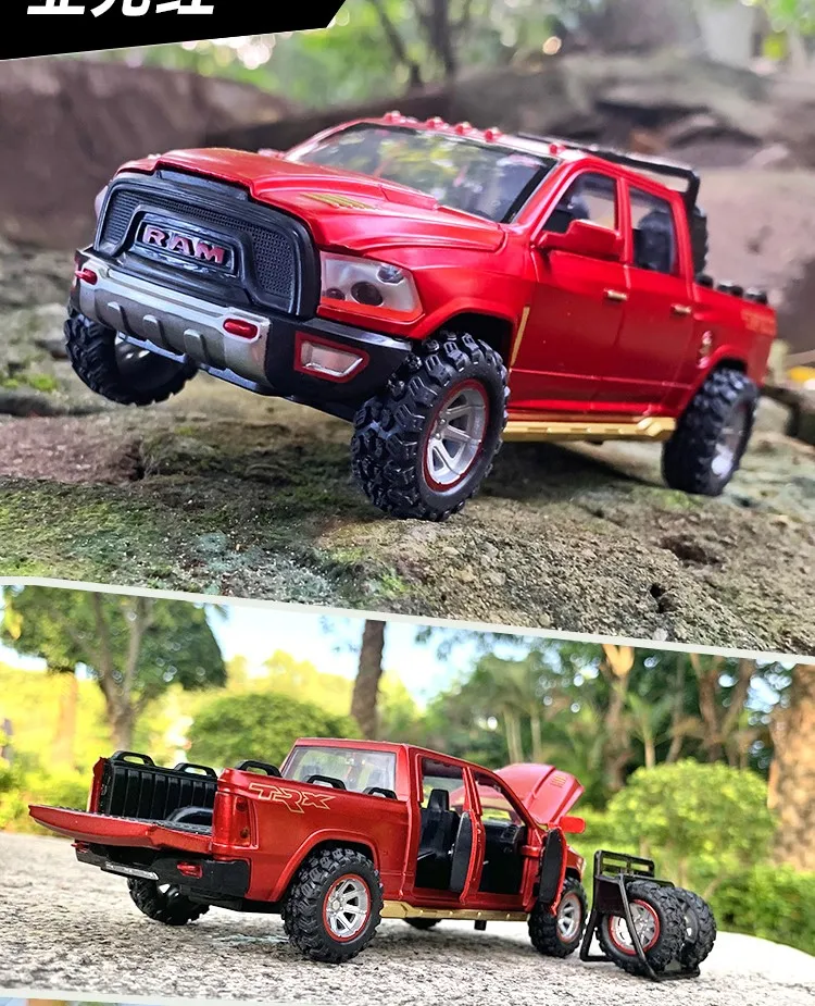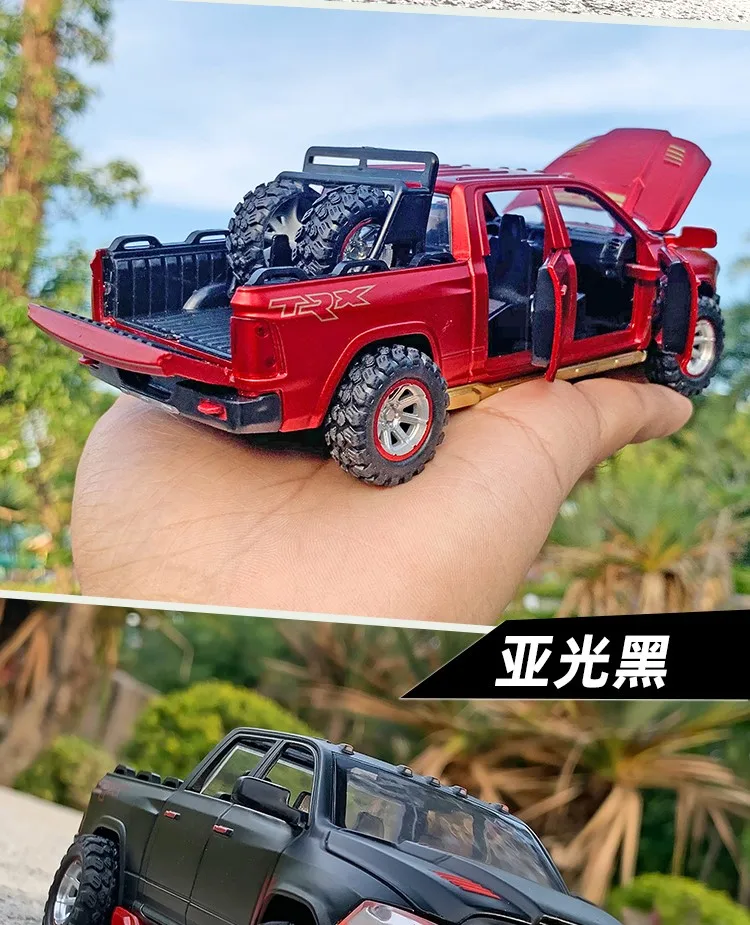 So why wait? Give your child the gift of exploration and creativity with our Dodge RAM TRX Diecast 1:32 Alloy model car miniature Pickup Off-Road. Let their imagination run wild as they embark on exciting adventures with this realistic and durable toy. Order yours today and watch as your child's love for cars and trucks grows.