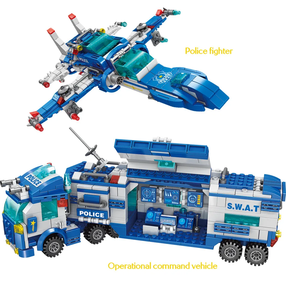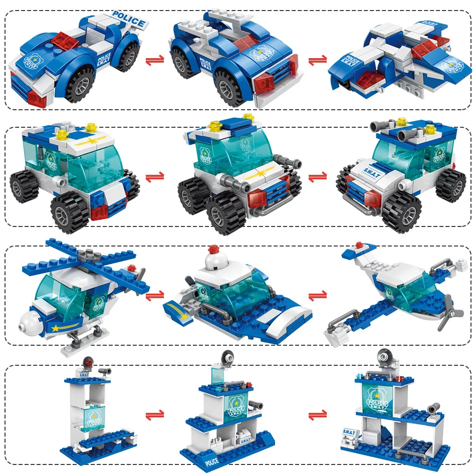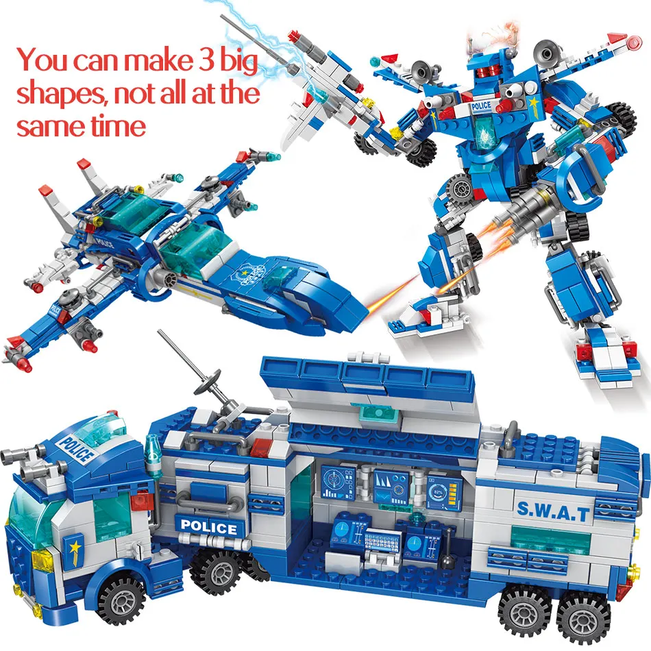 Looking for fun and educational toys for your kids? Check out our City Police Station Car Building Blocks SWAT Military Police Robot figures Bricks Sets! With 700 or 508 pieces, these self-locking bricks are compatible with Lego and will provide hours of building fun for children ages 4-12+. Our City Polices series includes a SWAT WW2 Military Police Station, a deformation aircraft, and a deformation robot, as well as various robot and police figures. Made of durable ABS plastic and certified by 3C, these building blocks are safe for kids to play with. Just remember, they are not edible! Give your child the gift of imagination and creativity with our building blocks sets.