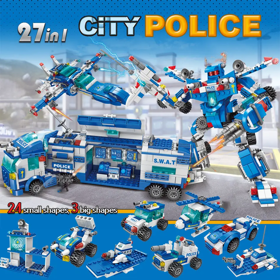 City Police Station Car Building Blocks SWAT Military Police Robot figures Bricks Sets Education Toys for Children Kids