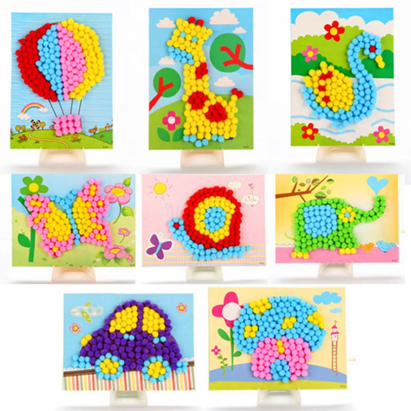 DIY Craft Toys Button Stickers Pompom Stickers Diamond Stickers Painting Drawing Toys Handmand Craft Kit Children Toys ZXH