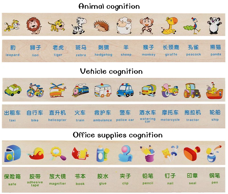 Our Montessori Early Educational Learn Toy Wood Box is designed to help children learn in a fun and engaging way. It consists of various items such as animals, transportation, office supplies, digital items, fruits, shapes, vegetables, and more. Each item is carefully crafted to help children learn about different concepts and develop their cognitive abilities.