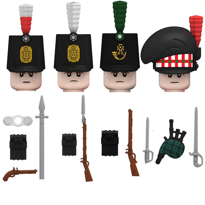 Napoleonic Wars Series Building Blocks Military Soldiers British Fusilier Rifles Bagpiper Figures Weapons Bricks Children Toys