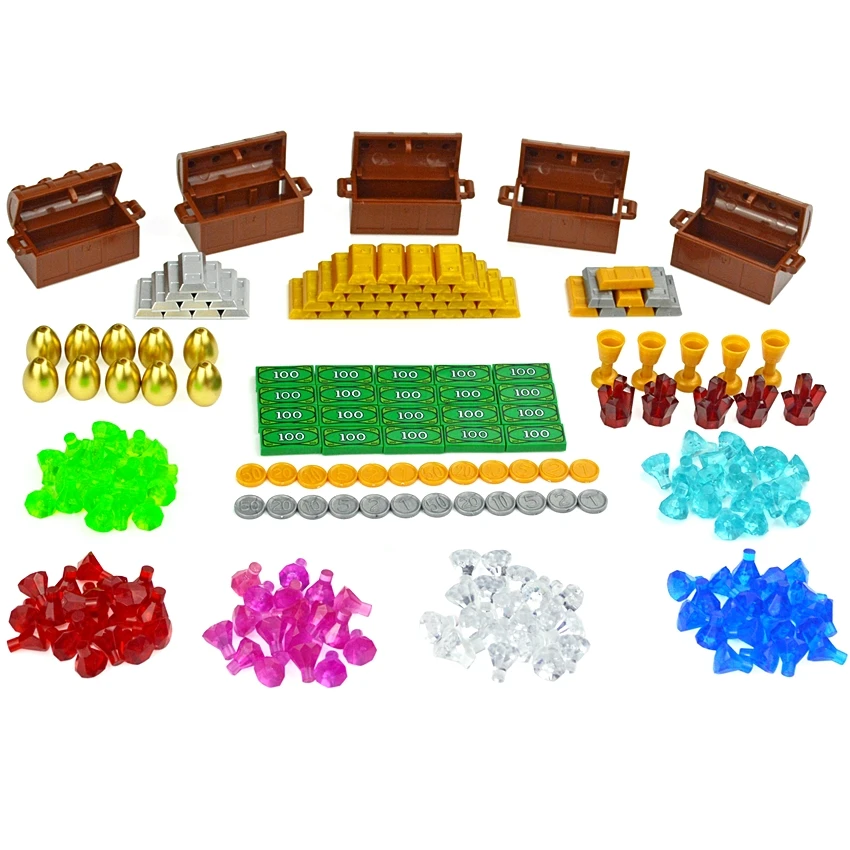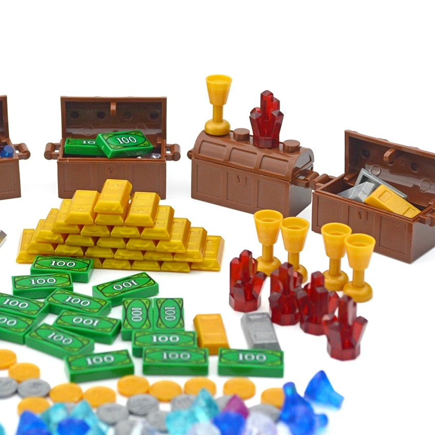 Welcome to our web page featuring a treasure trove of building block accessories for kids! Our DIY building blocks include a variety of items that are sure to spark your child's imagination. With a wide range of treasures to explore, including coins, diamonds, ores, gold, silver, cash, and money sets, your child will love playing with our collection of building blocks.