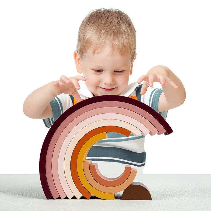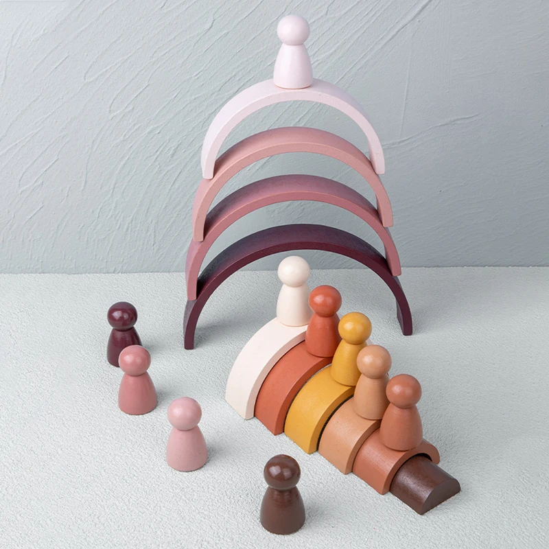 Wooden Toys Rainbow Building Blocks Rainbow Stacker Large Size Creative Montessori Educational Toys For Children Kids